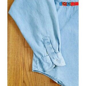 Vintage JouJou Women's Denim JeanButton Down Shirt with Native American Embroidery