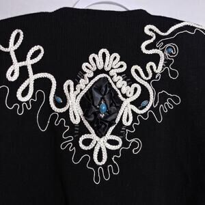 Vintage Joveil Black Embellished Jeweled Button Front Artsy Ornate Cardigan