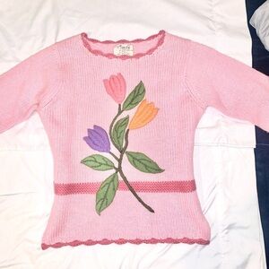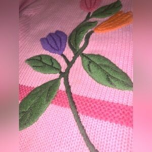 Vintage Joyce Sportswear 100% Wool Sweater Floral Needlework 1950s size 38