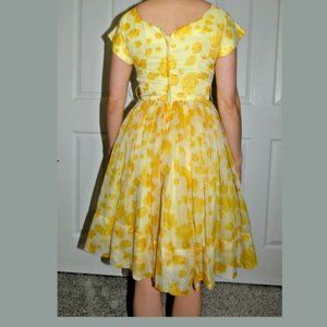 Vintage Jr Theme PROM Dress 50s Size XS Yellow Fluffy Chiffon Layers Petticoats