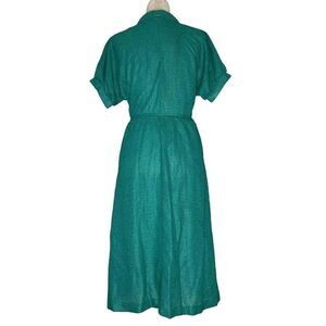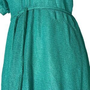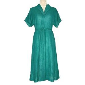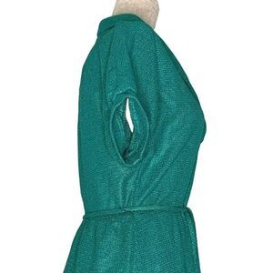 Vintage Jr Edition Dallas Dress S Green Waffle Weave Knit Collared Tie Waist