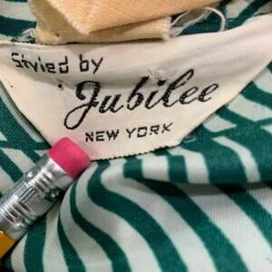Vintage Jubilee New York Geometric Print Blouse Long Sleeve Pointed Collar Retro Top