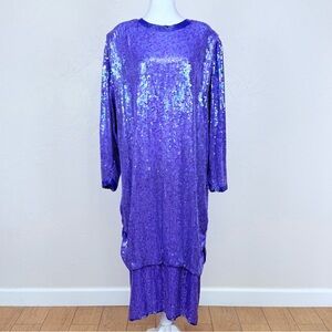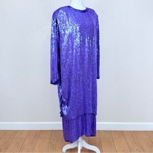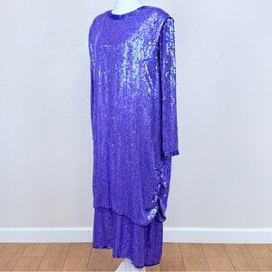 Vintage Judith Ann Creations Iridescent Purple Beaded Sequin Silk Dress 2X 18-20