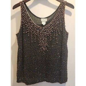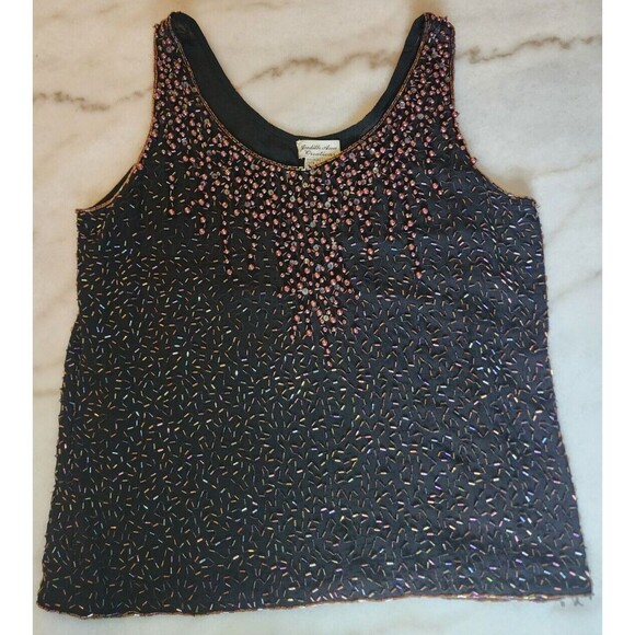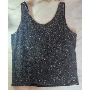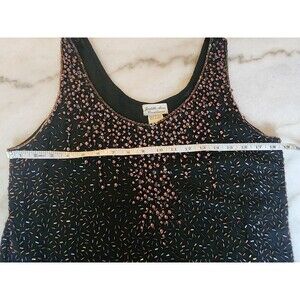 Vintage Judith Anne Creations Small 100% Silk Black & Gold Beaded Flowy Tank Top