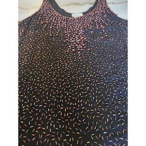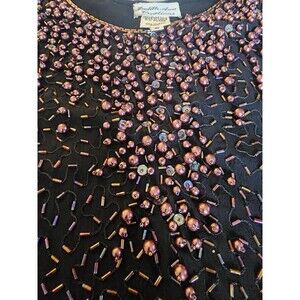 Vintage 1970s Judith Anne Creations Stunning Flowy Black 100% Silk Lined Flowy Tank with all over gold and iridescent beaded details throughout front and back. Size Small.