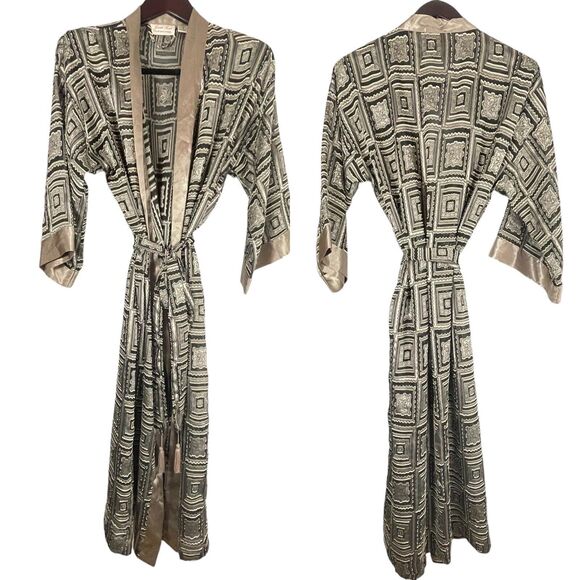 Vintage Judith Hart Long Belted Robe Size Small Black Bronze GEOMETRIC SemiSheer