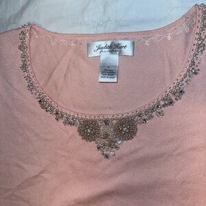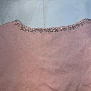 Vintage Judith Hart Pink Beaded Pullover Sweater - L Silk Blend Scoop Neck