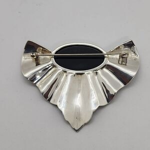 Vintage Judith Jack Art Deco Style Large Black Onyx & Marcasites Sterling Silver Brooch. Amazing Brilliance with a beautiful wavy design. Oval Black Onyx Stone Center, 1.1” long with clusters of shimmering Marcasites. Brooch measures 3” x 2.1”. Hallmarked JJ (Judith Jack) STERLING. In excellent condition.