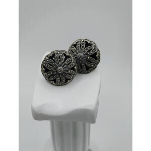 Vintage Judith Jack Marcasite, Onyx and Sterling Silver earrings