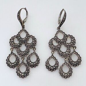 Vintage Judith Jack Sterling Marcasite Chandelier Lever Back Pierced Earrings 2"