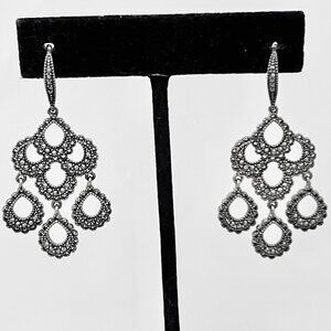 Vintage Judith Jack 925 Sterling Marcasite Chandelier Dangle Pierced Earrings 2"