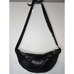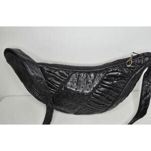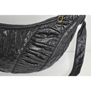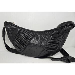 Vintage Judith Leiber Black Ostrich Leather Shoulder Bag Handbag Crescent Shape