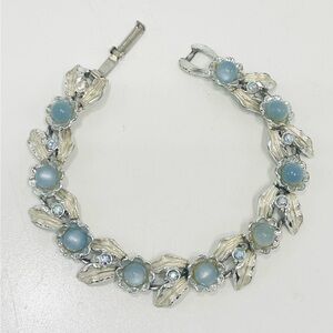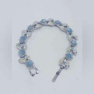 Vintage Judy Lee Blue Moonglow Flower Bracelet 7” Aurora Borealis Rhinestones