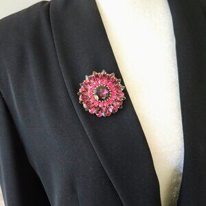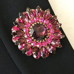 Vintage Judy Lee Fuchsia & Purple Rhinestone Brooch Pin