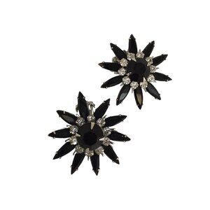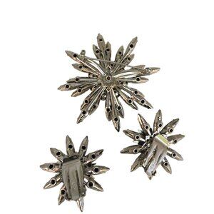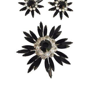 Details: Very nice, all pieces are signed. Blingy rhinestones and black navettes are all prong-set, clip-back earrings.