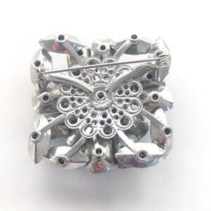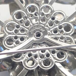 Vintage Judy Lee Silver Tone Prong Set Smokey AB Rhinestone Cluster Brooch