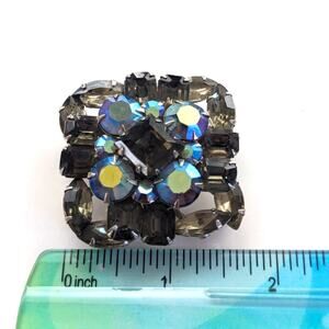 Vintage Judy Lee Silver Tone Prong Set Smokey Glass AB Rhinestone Cluster Brooch