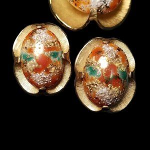 Vintage Judy Lee Speckled Easter Egg Glass Necklace Earring Set