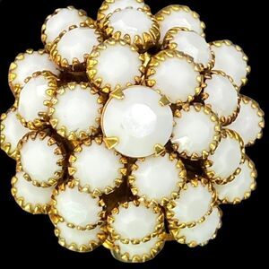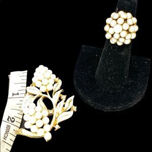 Vintage Judy Lee gold tone ring white balls & white gold grape brooch rhinestones