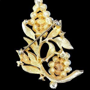 Vintage Judy Lee gold tone ring white & white gold grape brooch rhinestones