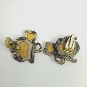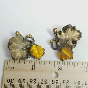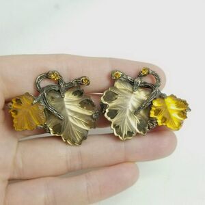 Vintage Judy Lee Fall Leaves Rhinestone Clip On Earrings, Yellow Brown, Estate