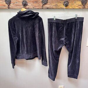 Vintage Juicy Couture Black Velour Tracksuit Set Zip Hoodie & Drawstring Pants X