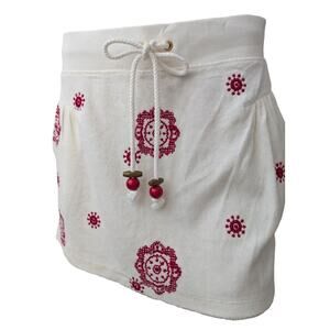 Vintage 2010 Juicy Couture Embroidered Terry Mini Skirt Size Large, wide elastic waistband with drawstring tie, pockets, stretch knit