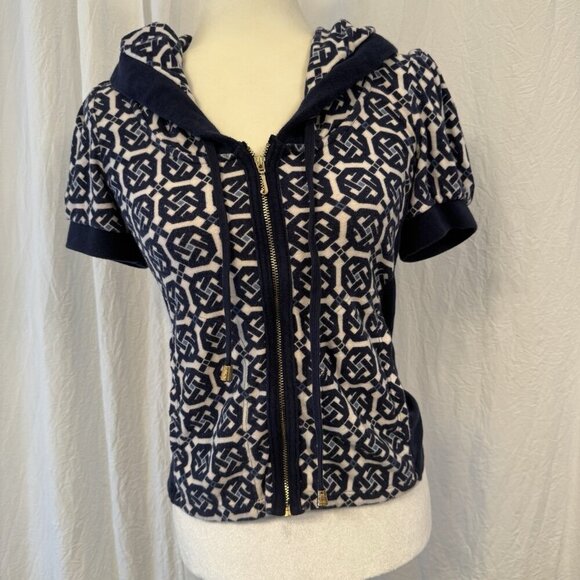 Vintage Juicy Couture French Terry Short Sleeve Hoodie Women Small Y2K Geometric