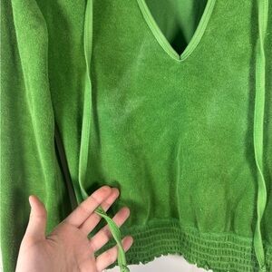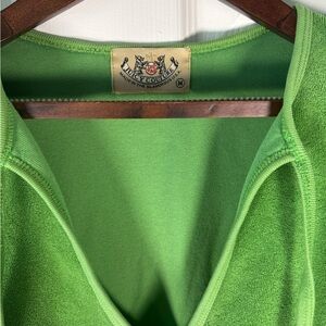 Vintage Juicy Couture Green Terry Long Sleeve Deep V Top Y2K Original Sz Medium