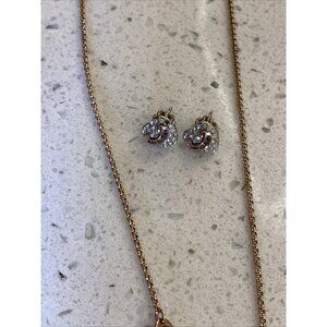 Vintage Juicy Couture Pave Heart Rhinestone Necklace Set Earrings Rose Gold