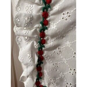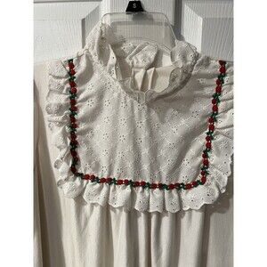 Vintage Juli of Slumbertogs Ivory Nightgown Flannel Victorian Prairie Sz M. 100% nylon Buttons on back. Eyelet accent with red and green trim. Pit to pit measures approx 20 Shoulder to hem measures approx 55