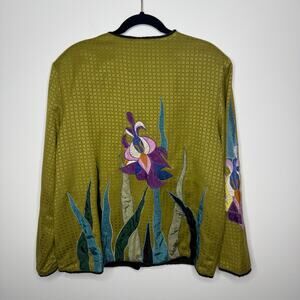 Vintage Julia Kim Green Embroidered Iris Jacket Size Large