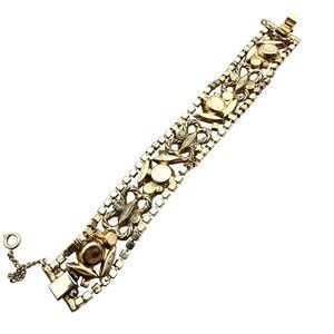 Vintage Juliana Coral Glass Rhinestone Rare Twisted Gold Rope Design Bracelet