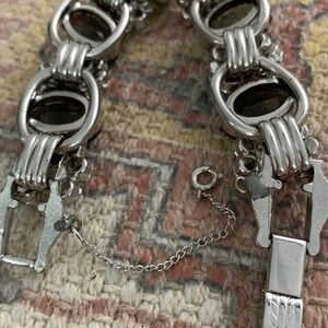 Exceptional vintage authentic Juliana for DeLizza & Elster peridot olive green and clear art glass rhinestones runway bracelet. High end designer piece. Signature 5 links. Measures approximately 7” long. Silver plated. Has safety chain but appears that it was reinforced or simply added down the line; but not recently. Fold over clasp functions tightly and perfectly, just as it should. Gentle, minor wear, if any. This bracelet is a sensational bedazzling work of art! What you see is what you will receive. 100% authentic.