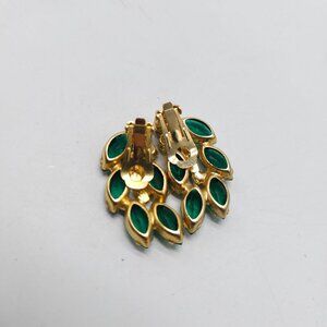 Elegant and timeless, these vintage clip-on earrings feature a stunning green rhinestone leaf design set in gold-tone metal, ideal for formal occasions.