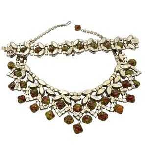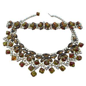 This exquisite Vintage Juliana Necklace Bracelet Set features dazzling glass rhinestones and gold tone saucer beads, perfect for adding a touch of elegance to any outfit. A timeless piece for vintage jewelry lovers and collectors.