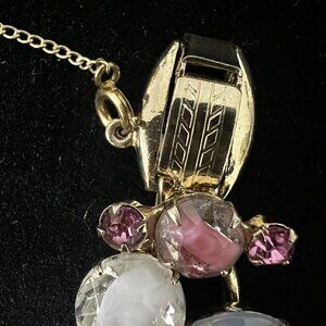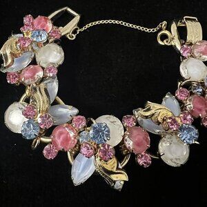 Vintage Juliana Pink Blue Givre Glass Stone Rhinestone Bracelet and Clip-on