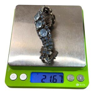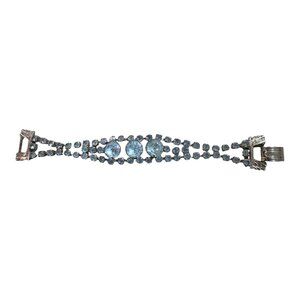 Add timeless elegance to your collection with this vintage silver-tone rhinestone bracelet. Its art deco style and shimmering blue stones exude sophistication.