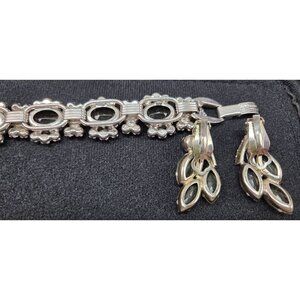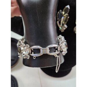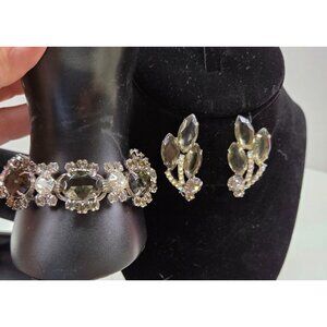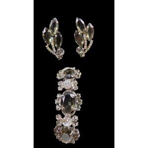 Vintage Juliana Smoke and Ice Rhinestone Bracelet & Clip Earring Set 1950s