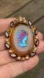 Gorgeous glass brooch/ pendant by Juliana. Very good condition. Amazing iridescent glass cameo surrounded by rhinestones. It just seems to glow.