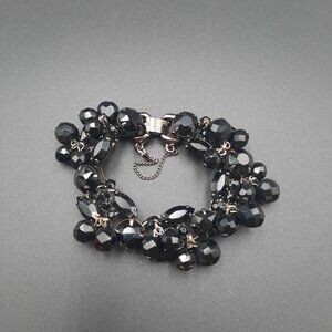This Julianna D&E bracelet showcases a sophisticated design with intricately arranged black beads. The adjustable chain and clasp ensure a secure fit, making it an ideal accessory to enhance evening wear.