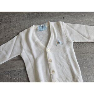 Vintage Julius Berger Baby White Button Up Sweater Cardigan Baby Blue Bird NB