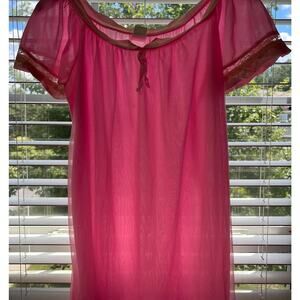 Vintage Julius Nylon Sheer Overlay Nightgown Pink Short Sleeve Size M 70s