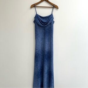 Vintage Jump Apparel Blue Ombré Maxi Dress Formal Gown Sparkly Drape Neck 13/14