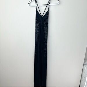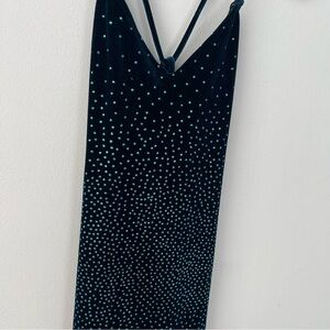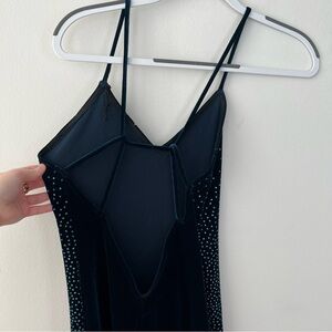 Vintage Jump Velvet Navy Blue Maxi Dress. only flaw is the strap has a pice of string sticking out due to the threading unraveling slightly, but this could be tucked in or sewn easily. otherwise in great condition!