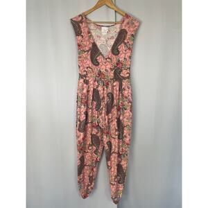 Vintage Jumpsuit Size Medium Large Pink Paisley Lounge Stretch Comfort Retro 90s