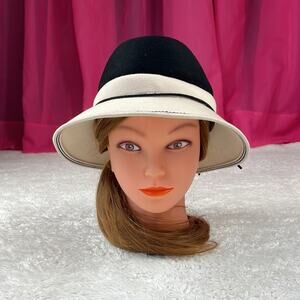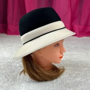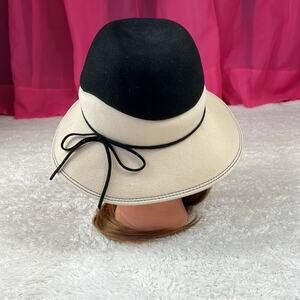 Vintage Junior Seasons Union Made cream and black doeskin wool felt hat, 22 1/2