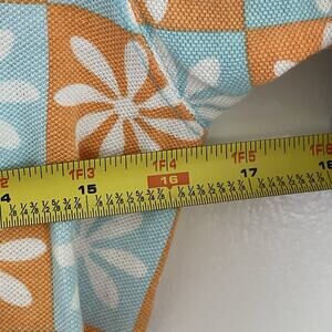 • Pattern: Vibrant orange and blue checkered print with white daisy flowers – a true mod/retro look