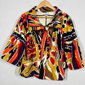 Vintage Just B Shacke tTop Jacket Mod Print Mock Neck Casual 3/4 Sleeve - XL