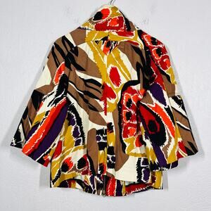 Vintage Just B Shacket Top Jacket Mod Print Mock Neck Casual 3/4 Sleeve - XL
